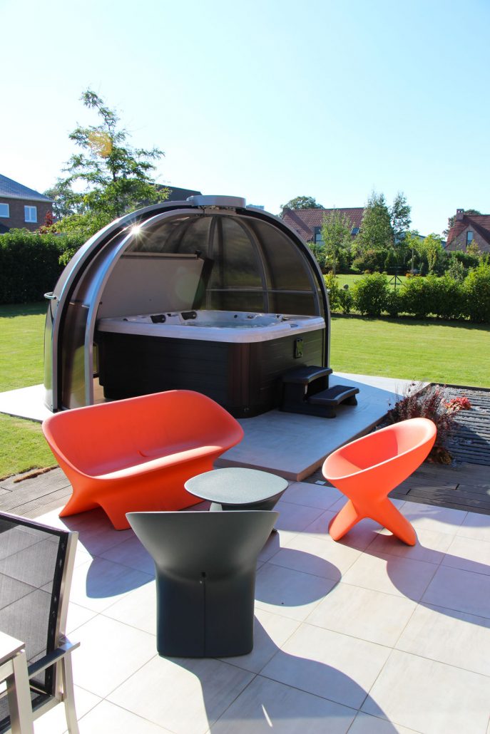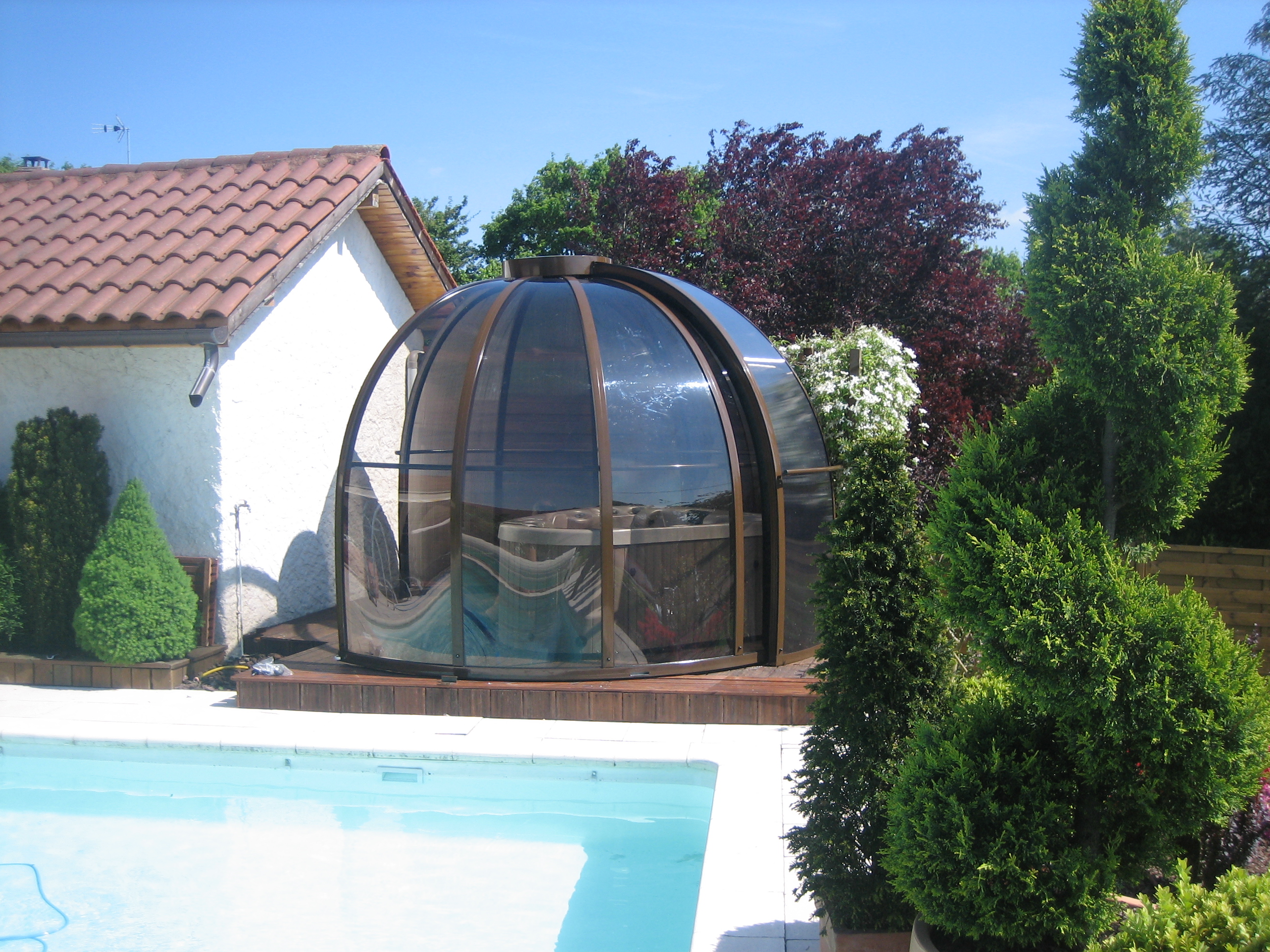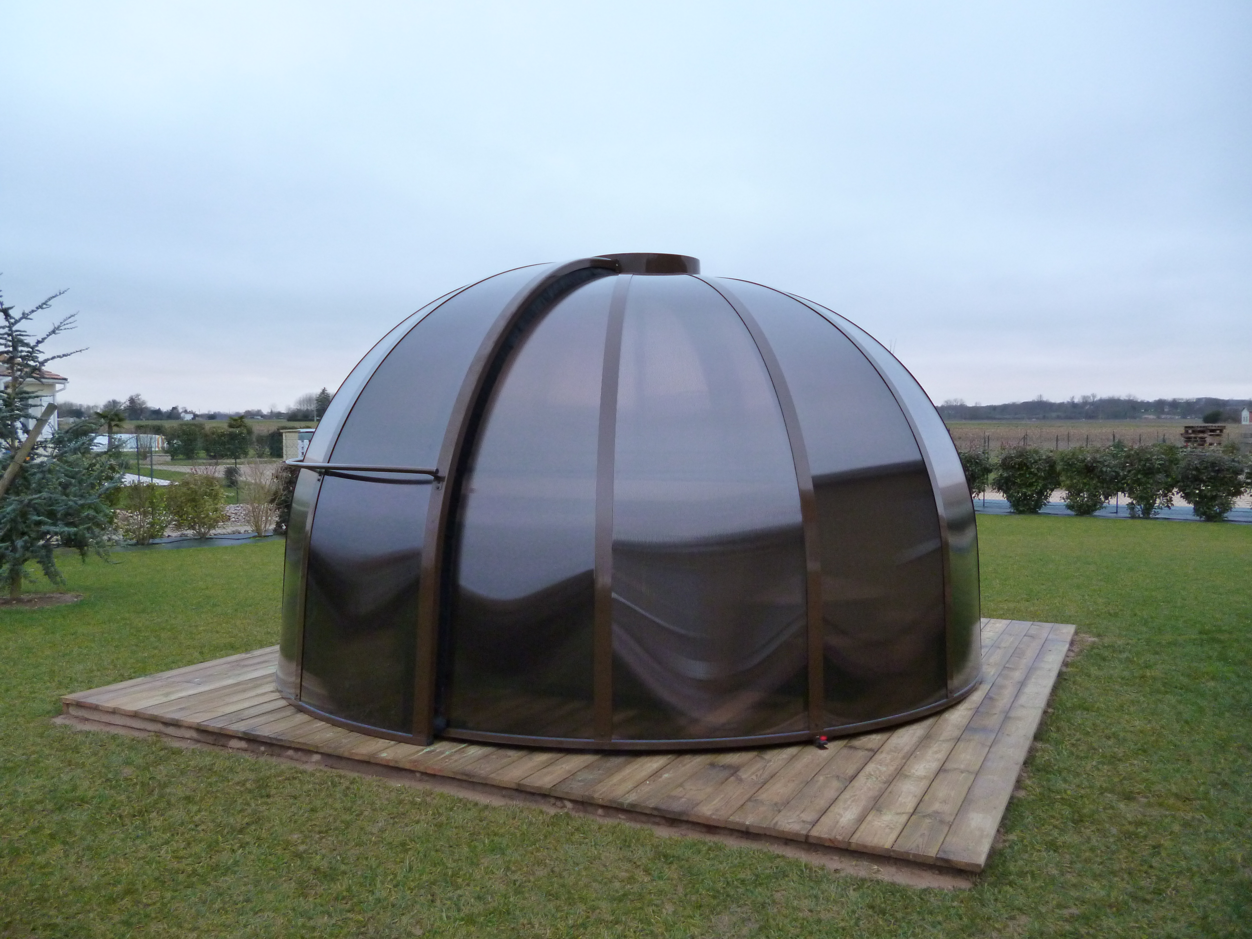 De diamètre intérieur 4 mètres ou de forme allongée, la hauteur et le volume de cet abri Spa vous offre un espace d’intimité contribuant à construire une ambiance sereine invitant au partage, à la détente et au bien être.