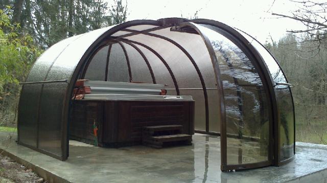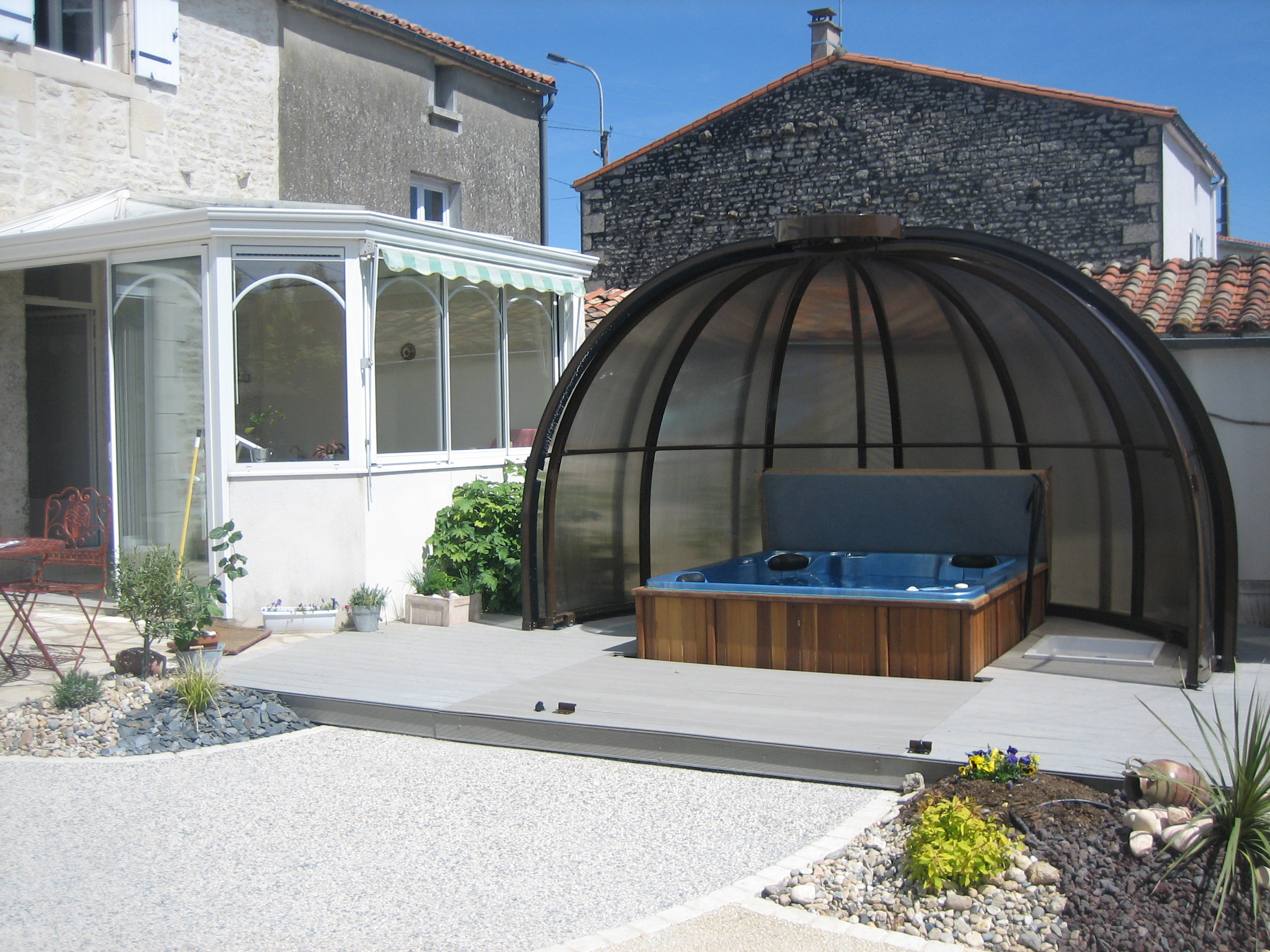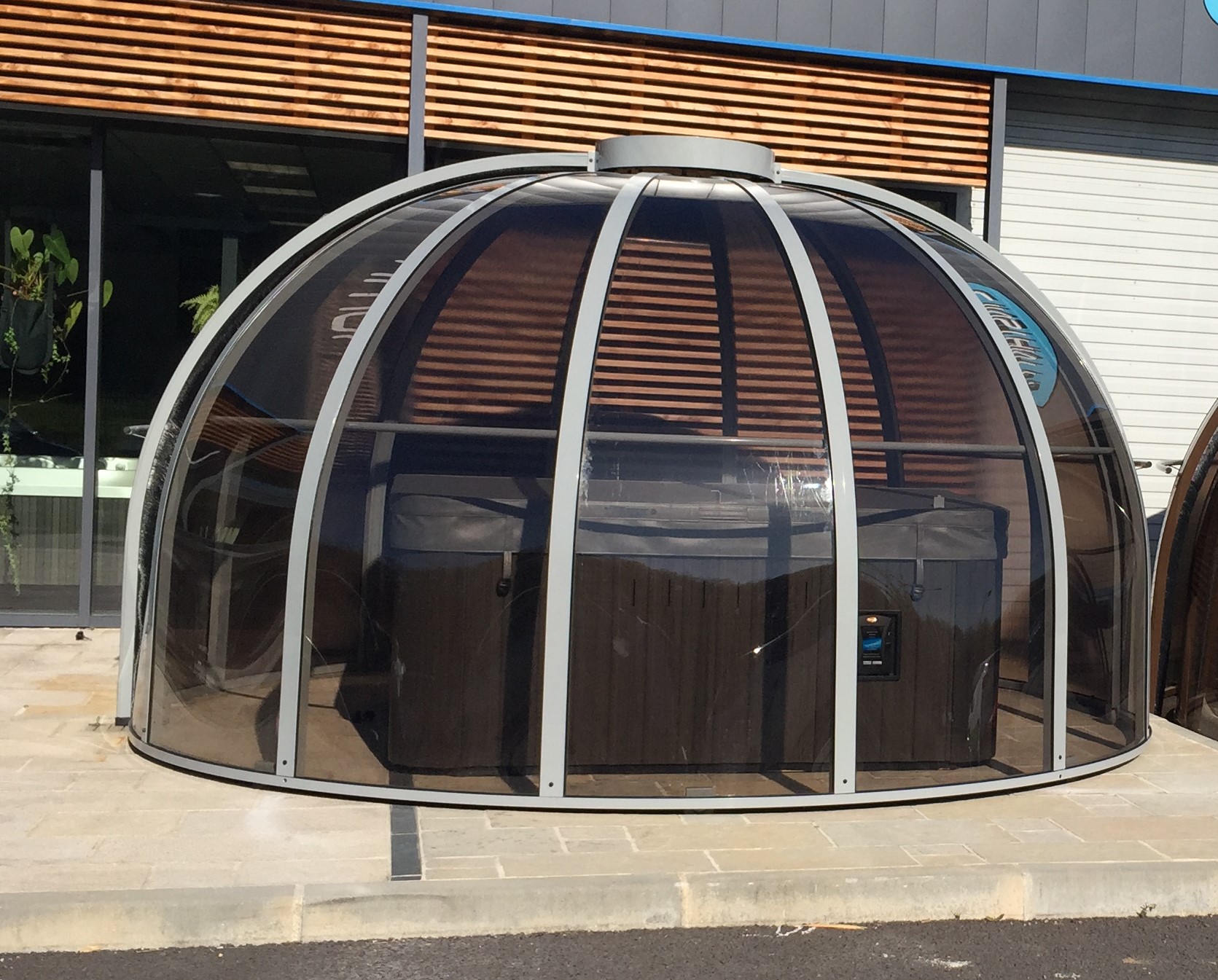 Les vitrages de l’Abri Spa sont exclusivement en polycarbonate traité anti-UV sur les 2 faces.