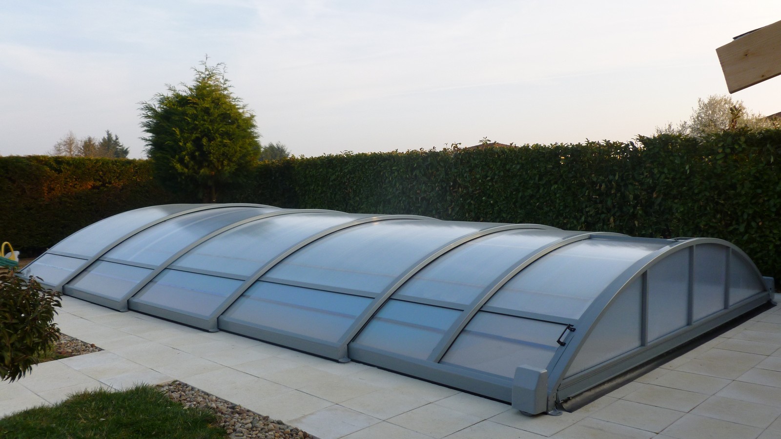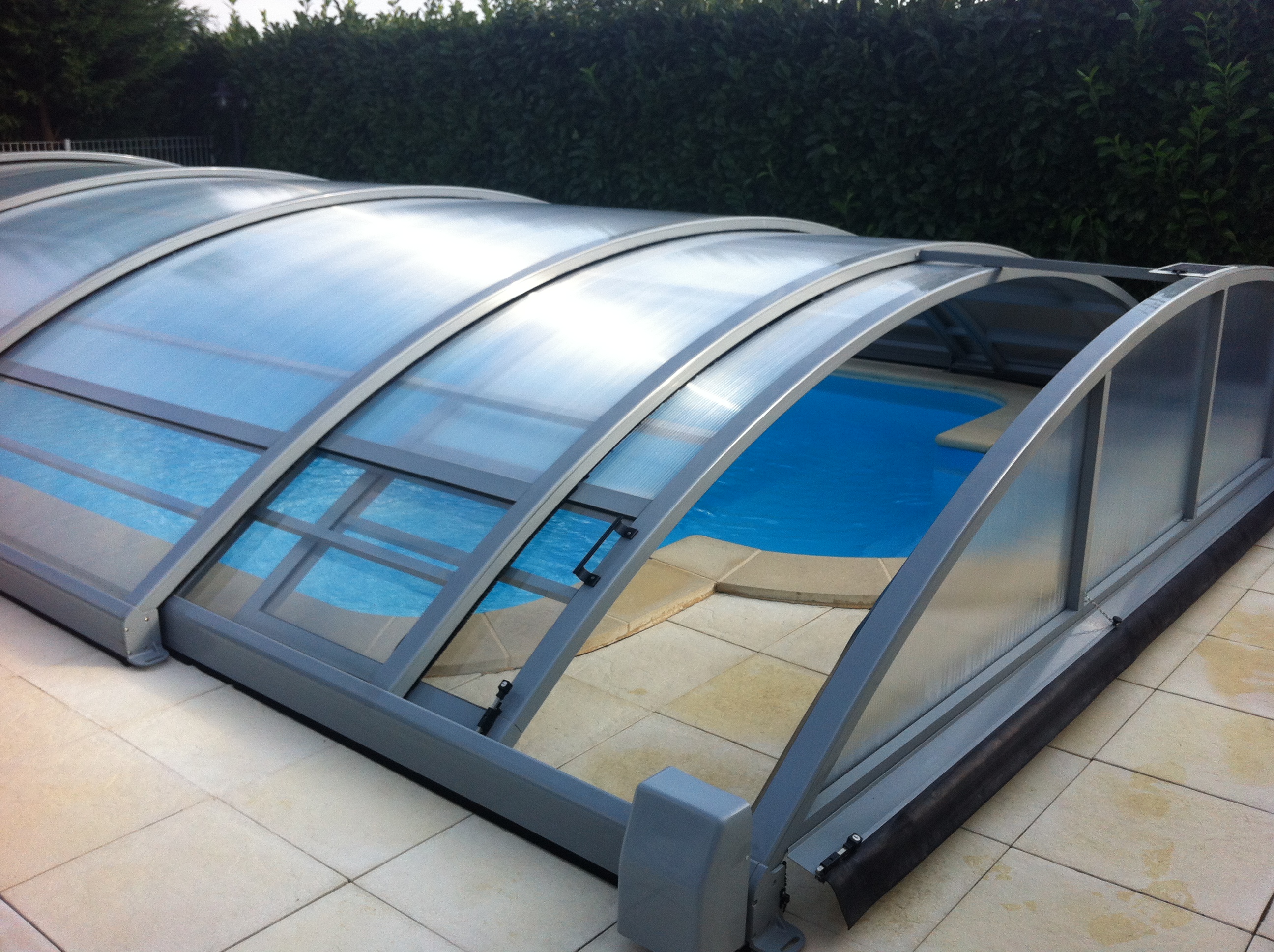 ELITYS BASCI est un abri de piscine bas télescopique classique.