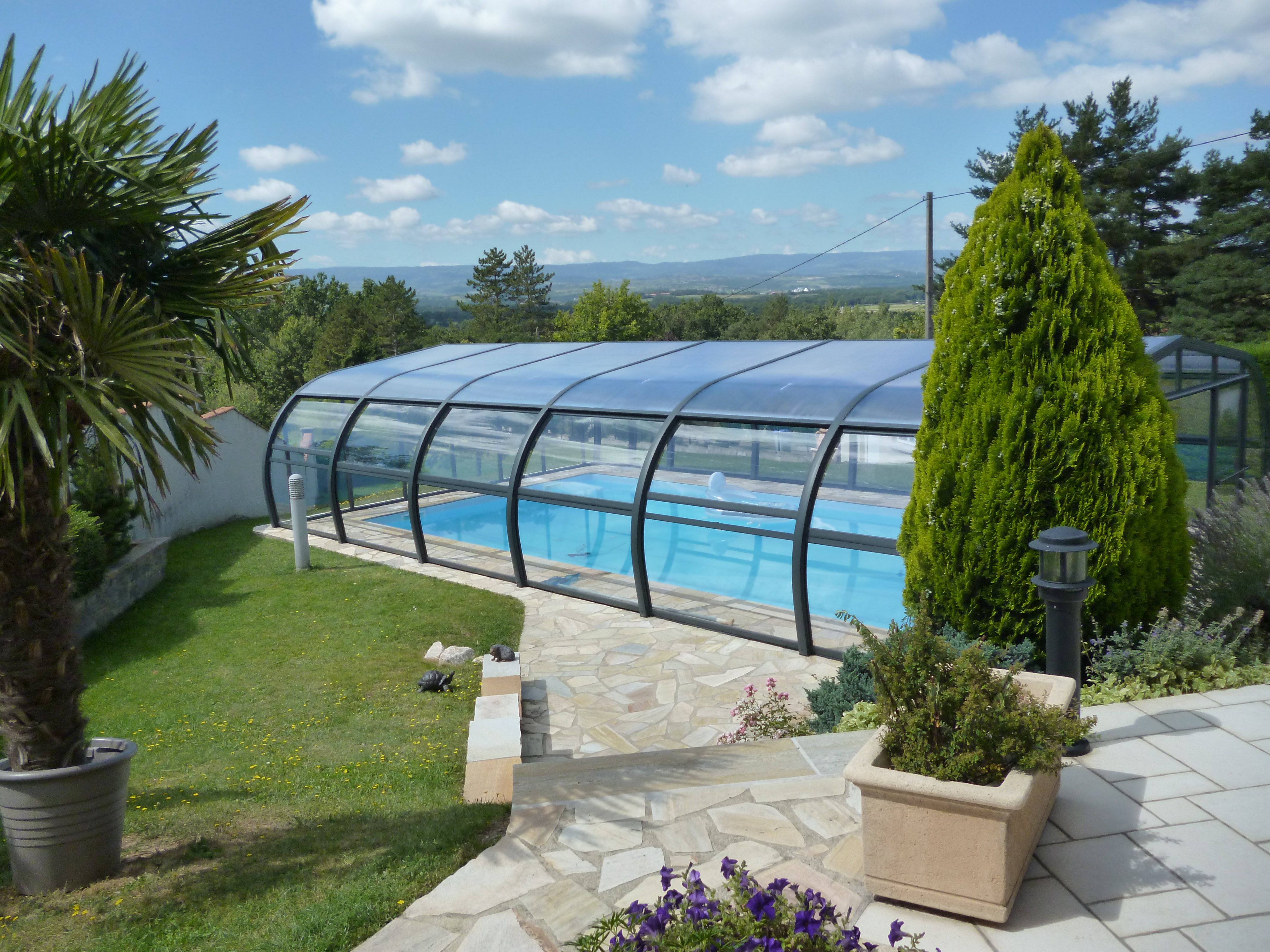 HERA est un abri de piscine haut fixe qui résiste aux intempéries.